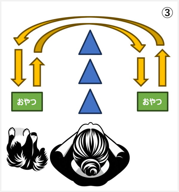 下の図のように、自分の前のコーンを増やしていき、自動的に奥のコーンを回って来られるようにします。