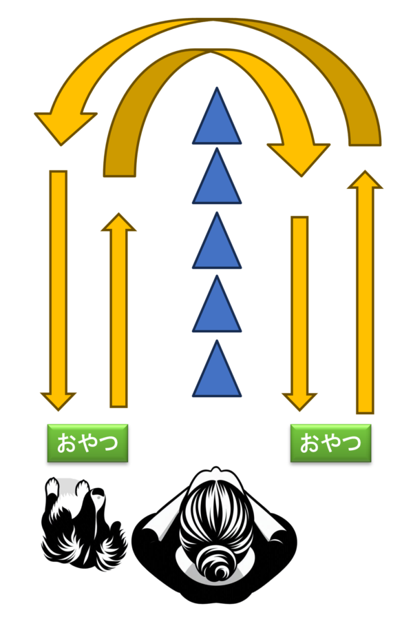 7月に少しだけやって、コーンを6個置いた状態で、何も言わなくても行ったり来たり出来るようになったくーちゃん。